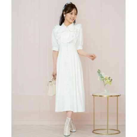 【新色登場!】WILLSELECTION定番の大人気ワンピ、ラッフルリボンタイシャツワンピースに夏の新作Verが登場♪【Design】・フェミニンスタイルの王道デザイン、ラッフルフリルとリボンタイがボリューム感あるロングワンピース。・定番カラーはもちろん、春服や夏服にぴったりなカラーもラインナップした豪華なカラー展開♪・甘さのあるフリルはシャツデザインできちんと感をプラスすることで、大人っぽくも着ていただけます。・ウエストタック入りでフィット感があるので細見え効果も◎・ロングのフレアシルエットが女性らしい雰囲気を演出してくれる、今季おすすめの一着です♪・ウエストバックはシャーリング&レースアップ仕様で、ウエストサイズの調整が可能!・リボンタイは取り外し可能。・フロントボタン仕様。【Fabric】・しなやかなをもち、さらっとご着用いただける生地感です。・裏地付き。・ホワイト、イエロー、ラベンダー(New)、ブルー(New)、ネイビー、ブラックチェックの6色展開となります。【Care】ドライクリーニング