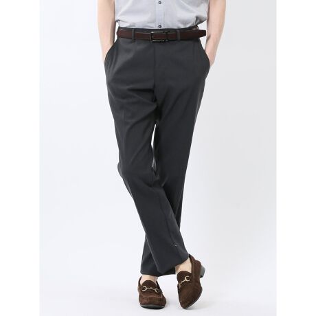 すっきりとしたノータックのテーパードパンツです。センタープレス加工により、キチンと感のあるクリーンな印象に仕上げています。ウエストストレッチで着脱もスムーズ、着席時も窮屈感がありません。裾部分は未加工です。