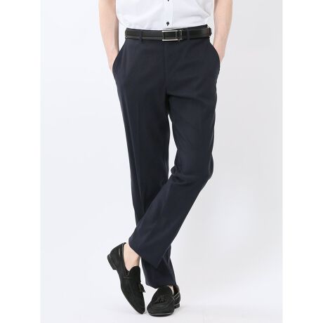 すっきりとしたノータックのテーパードパンツです。センタープレス加工により、キチンと感のあるクリーンな印象に仕上げています。ウエストストレッチで着脱もスムーズ、着席時も窮屈感がありません。裾部分は未加工です。