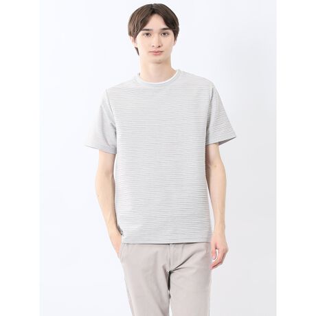 ピンタックボーダー クルーネック半袖Tシャツ