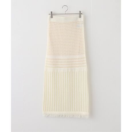 異なる編み目が模様のように映るニットスカート。