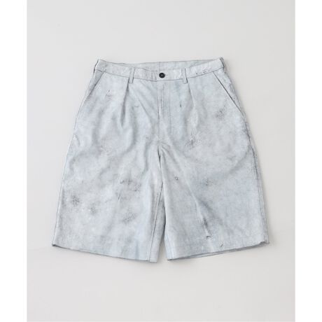 ひび割れたような独特の表情を持つ“クラック加工”を施した、ゴートレザー調ショートパンツ。
