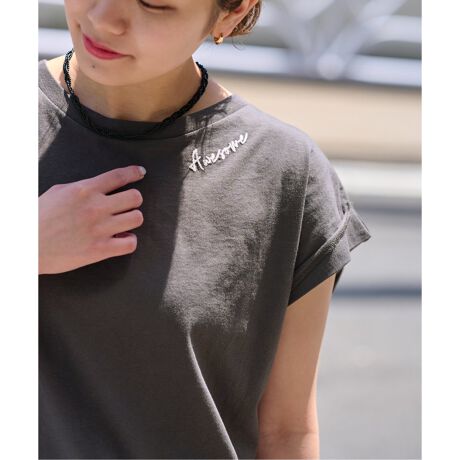 ◆チェーン刺繍がポイントのフレンチスリーブTEE。