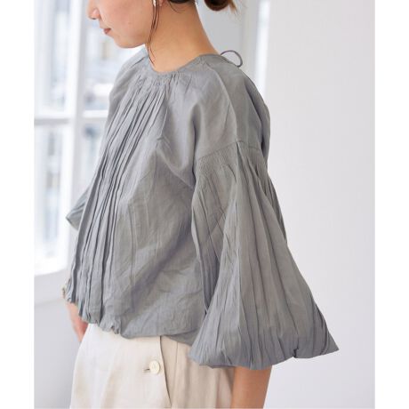 透け感のあるコットンボイル生地を、シャーリングとたっぷりのギャザーを寄せてバルーンシルエットに仕上げたブラウス。