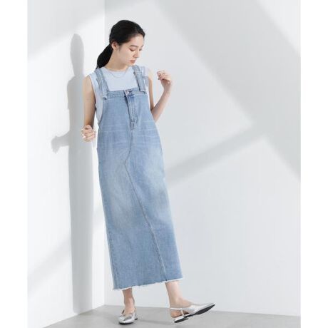 ロングシーン着まわしたい、デニム生地で仕立てたジャンパースカート。シンプルながらもこなれた印象のディテールと、様々なインナーと合わせやすいアームホールデザインがポイント。ワードロープに加えておきたい優秀なアイテムです。