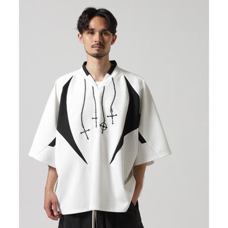 メッシュ素材のゲームシャツに刺繍でオリジナルグラフィックを施した斬新なアイテム。