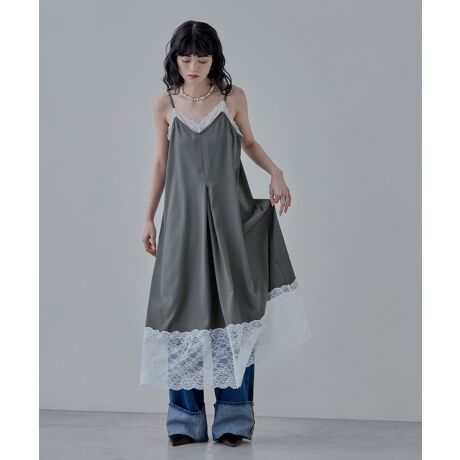 etoll. エトル ランジェリーのような繊細なレースデザインで、フェミニンな大人ムードが高まるキャミワンピース。