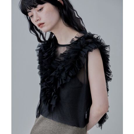 チュールフリルショートベスト