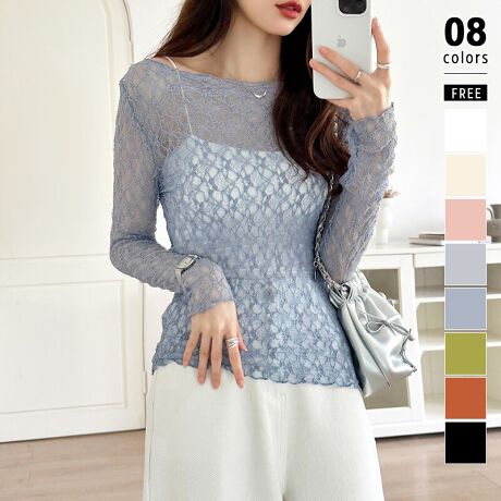 マルイウェブチャネル   /   トップス   /   Tシャツ・カットソー   /   シアートップス 透け感 チュール トップス レース 長袖 シアー カットソー レディース インナー