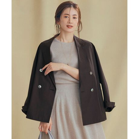 大きすぎないオーバーシルエットのボクシーなダブルフロントジャケット。少し大きめなピークドラペルと、カジュアルなこなれ感を出してくれるアウトポケットがポイントです。袖口は本あき仕様なので釦をあけて折り返し、ラフに着用いただけます。Tシャツとデニムなどカジュアルアイテムに羽織るスタイリングや、同素材のパンツやワンピースとのセットアップスタイルもおすすめです。カラーは、マニッシュな雰囲気が楽しめるキャメル(#034)、トレンド感のある優しい印象のダークブラウン(#035)の2色展開です。