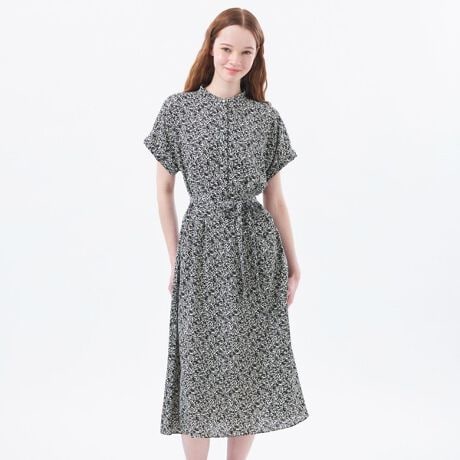 ドライタッチで肌離れの良いポリエステル素材に繊細なフラワーモチーフをプリント。落ち感のある素材で上品なバイカラーデザインにマッチします。