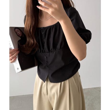 callautia フロントギャザーバックリボンブラウス