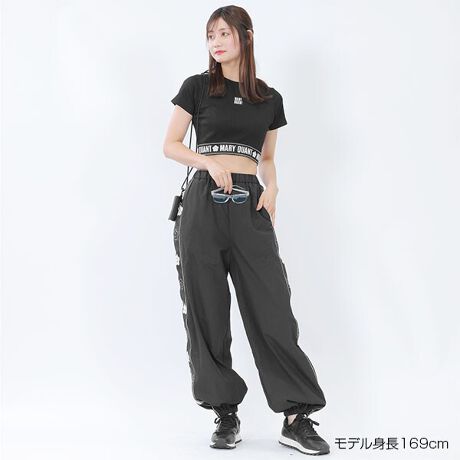 リブ生地で仕上げたクロップド丈のTシャツ。◆ポイント・印象的な裾のデイジー&ロゴテープ・FRONTにロゴ刺繍・半袖◆カラー展開・ブラック・ホワイト◆コーディネートミニスカートやハイウエストのデニムを合わせれば、ヘルシーな肌見せコーデに。[型番:225-612802]