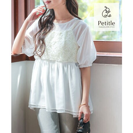 ふんわりとしたシアーブラウスと、立体的なフラワーモチーフが華やぎを添えるキャミソールの2点セット。