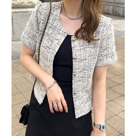 華やかさと上品さを併せ持つ、大人可愛いツイード半袖ジャケット。