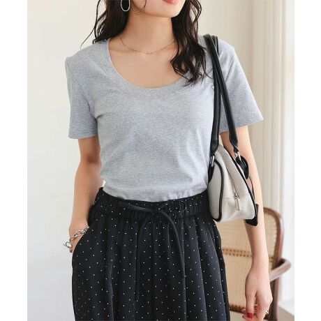 シンプルなのに、どこか洗練された雰囲気をまとう深UネックTシャツ。