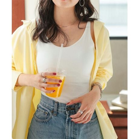 Tシャツやシャツのインナーとしてはもちろん、バックシャンなデザインを活かして、背中の開いたトップスとのレイヤードスタイルにもおすすめです。