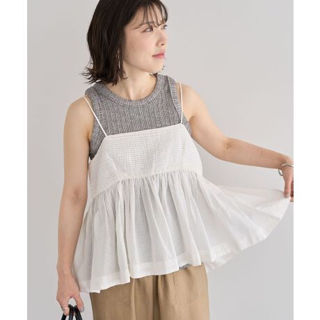 繊細なレースとピンタック使いがポイントのビスチェ。テールロングのふんわりとしたフレアシルエットがフェミニンな雰囲気溢れるひと品です。繊細なショルダーストラップが抜け感を演出し、バックにアクセントを加えたデザインも魅力的。様々なアイテムと合わせて旬なレイヤードスタイルが楽しめるおすすめの差しアイテムです。透け感[ややあり]