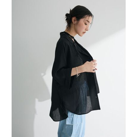 トレンドに左右されない着回し力抜群のシアーシャツ。ジャケットライクな開襟デザインに、前後差ラウンドヘムがこなれた着こなしを後押しします。ゆったりとしたボックスシルエットで、ラフな着心地も魅力的なポイント。さりげない透け感がサマーシーズンにぴったりの、おすすめのアイテムです。■デザイン