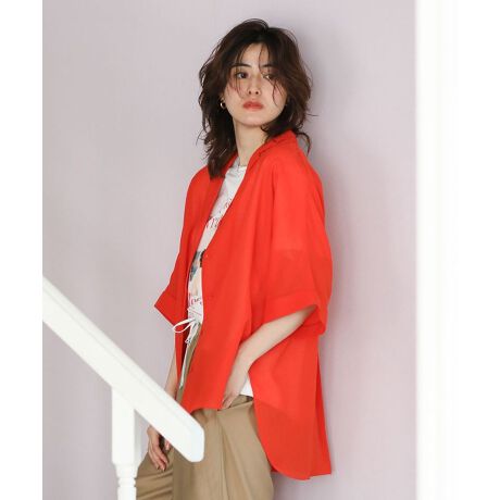 トレンドに左右されない着回し力抜群のシアーシャツ。ジャケットライクな開襟デザインに、前後差ラウンドヘムがこなれた着こなしを後押しします。ゆったりとしたボックスシルエットで、ラフな着心地も魅力的なポイント。さりげない透け感がサマーシーズンにぴったりの、おすすめのアイテムです。■デザイン