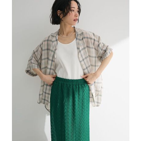 #シアー #シャツ #ジャケット #羽織 #開襟 #ボックスシルエット #春 #夏 #大人カジュアル #きれいめカジュアル #着回しアイテム #体型カバー #透け感 #チェック柄 #半袖 #レディース
