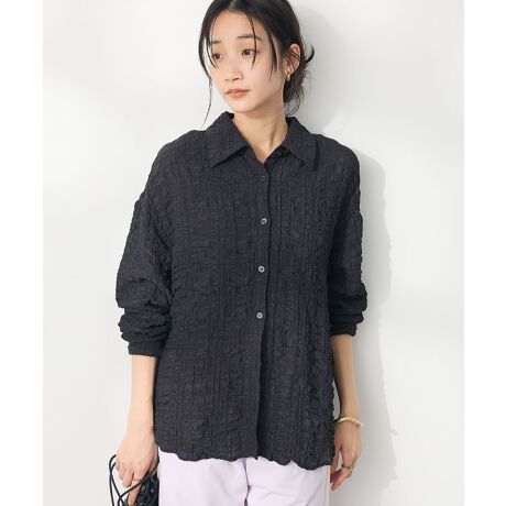 ・ポップコーンのように表面がぽこぽこっと膨らんだ、立体的な生地を使用したシャツです。