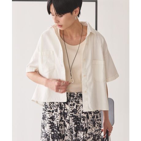 フロントのダブルポケットをアクセントにしたデニムショートシャツ。ドロップショルダーのワイドシルエットにクロップド丈でトレンドライクに着こなしていただけます。ヴィンテージ風に仕上げたブラック、インディゴに爽やかなオフホワイトを加えた3色展開。幅広いアイテムと合わせやすいシンプルなデザインも魅力です。透け感[ややあり]