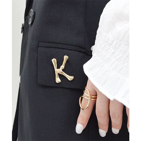 シャツ・ジャケット・ニットなど、アイテムを問わずワンポイント加えられる万能なイニシャルブローチ*:+。