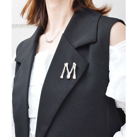シャツ・ジャケット・ニットなど、アイテムを問わずワンポイント加えられる万能なイニシャルブローチ*:+。
