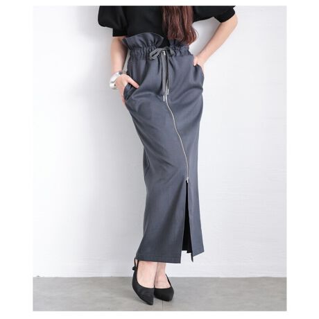 大人が垢抜けるヘザーエステルツイルギャザーウエストストレートスカート。ウエストのギャザーとフロントジップがアクセントになったトレンド感あるデザイン。ヘザー調の生地がナチュラルな雰囲気を演出し、カジュアルにもきれいめにもマッチします。ウエストはドロスト仕様でフィット感も◎動きやすさとデザイン性を兼ね備えた1枚です。