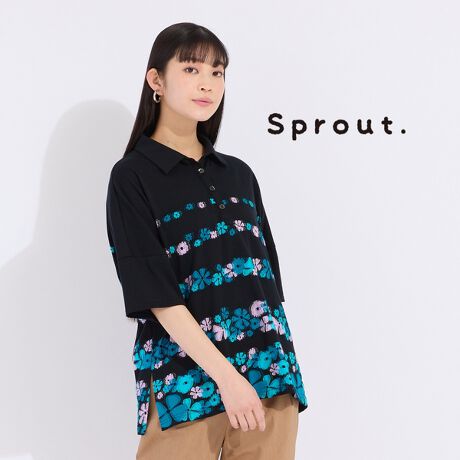 【Sprout.】フラワーカットジャカードポロシャツ