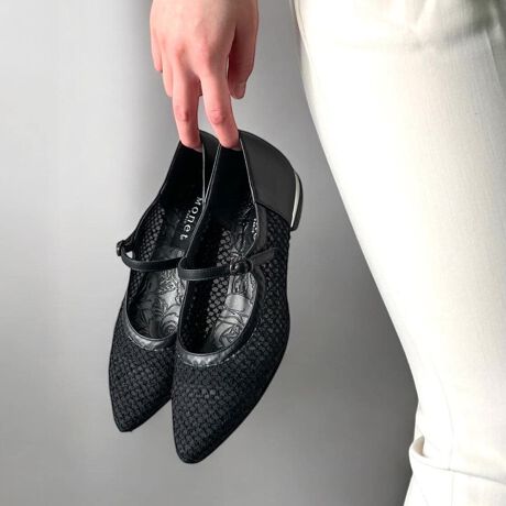 細めのポインテッドトゥが女性らしいラインを引き立て、華奢なストラップが歩きやすさとモードな印象をプラス。さらに、ローヒール設計で安定感があり、長時間履いてもストレスフリーな快適さが魅力です。