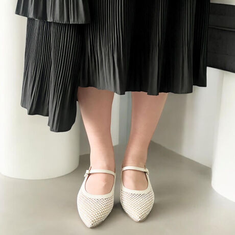 異素材コンビ×透け感で魅せる、大人の洗練パンプス