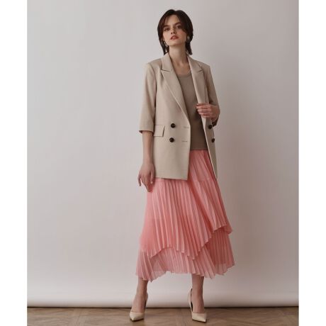 柔らかいシフォン素材を使用した、イレギュラーヘムシルエットのレイヤードスカート。 ヒップ部分は細かいプリーツでボリュームを抑え、裾にボリュームを出すことでマーメイドのような女性らしいシルエットを表現しています。ヒップ周りをすっきりとさせて、裾の華やかさで見せるディティールが新鮮な一枚。体型を選ばず、綺麗に穿いていただけるように拘ったのもポイントです。 色はベーシックカラーのグレーに鮮やかなピンクとブルーを加えた3色をご用意しました。