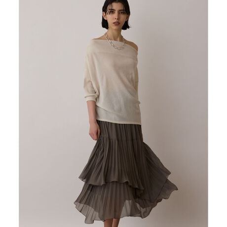 柔らかいシフォン素材を使用した、イレギュラーヘムシルエットのレイヤードスカート。 ヒップ部分は細かいプリーツでボリュームを抑え、裾にボリュームを出すことでマーメイドのような女性らしいシルエットを表現しています。ヒップ周りをすっきりとさせて、裾の華やかさで見せるディティールが新鮮な一枚。体型を選ばず、綺麗に穿いていただけるように拘ったのもポイントです。 色はベーシックカラーのグレーに鮮やかなピンクとブルーを加えた3色をご用意しました。