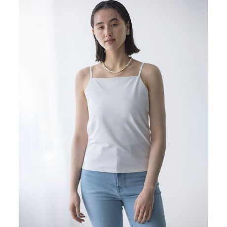 ■デザイン・華奢なショルダーストラップのベーシックなキャミソール。・バスト部分を二重にすることで胸元の透け感を軽減。・着用した時に胸元があき過ぎないよう身頃を高めに設定し安心感も◎。・体に美しくフィットするのでトレンドのシアートップスのインナーにおすすめです。