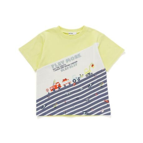 4台並んだはたらくくるまがボーダーの坂をグングンのぼっているプリントが面白いデザインです。