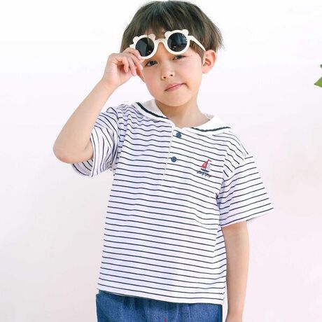 胸元にほどこしたヨットの刺しゅうがアクセントになっています。