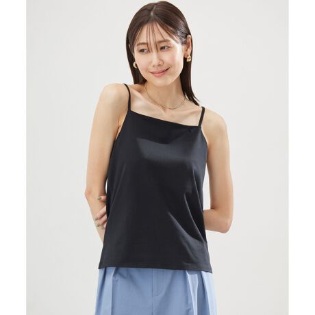 ■デザイン・華奢なショルダーストラップのベーシックなキャミソール。・バスト部分を二重にすることで胸元の透け感を軽減。・着用した時に胸元があき過ぎないよう身頃を高めに設定し安心感も◎。・体に美しくフィットするのでトレンドのシアートップスのインナーにおすすめです。