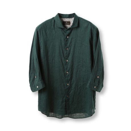リネン専門ファブリックメーカーの上質なリネンが、軽やかで風合い豊かな印象を与えてくれる七分袖シャツ。