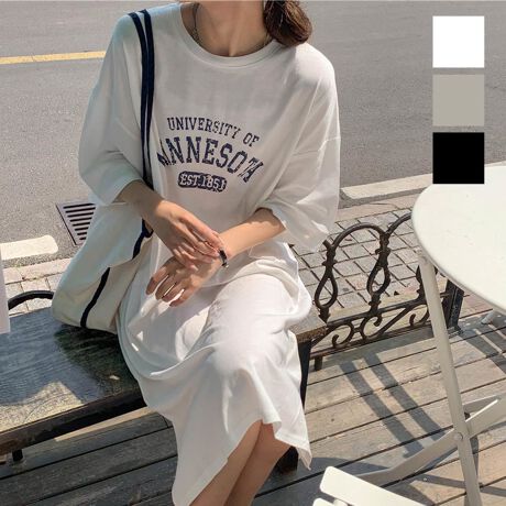 着心地いい半袖ロゴワンピース