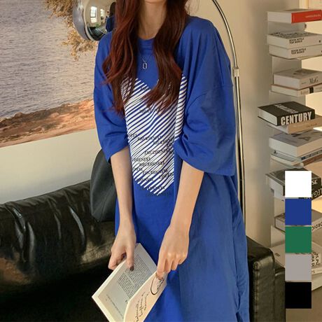 トレンド感あふれる大きなハートプリントが目を引く半袖Tシャツワンピース。<br>