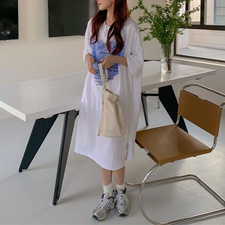 トレンド感あふれる大きなハートプリントが目を引く半袖Tシャツワンピース。<br>