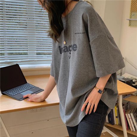 ドロップショルダーがこなれた雰囲気を演出し、カジュアルながらもおしゃれな印象を与えます。<br>