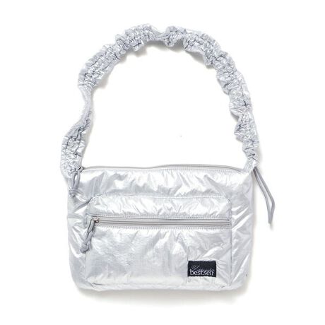 クシュクシュっとした持ち手がかわいいドローコードショルダーバッグです。