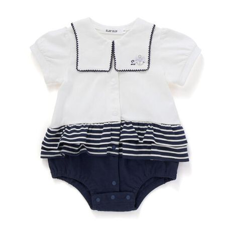 大きめな襟が可愛い半袖のロンパース。