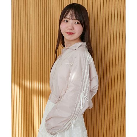 スポーティーなトラックブルゾンにリボンとレースが施されたガーリーなアイテム