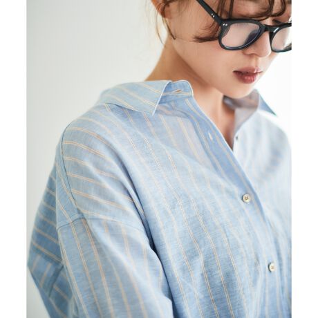 ルクールブラン定番の麻混素材のオーバーシャツ。