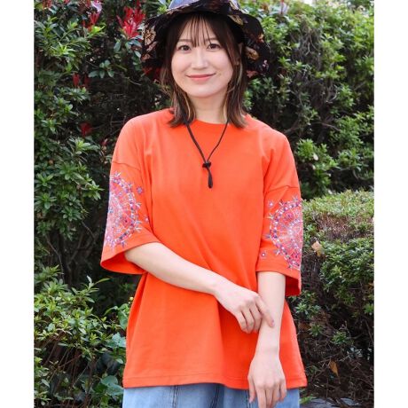 サークル型のカラフル刺繍が目を惹くTシャツ
