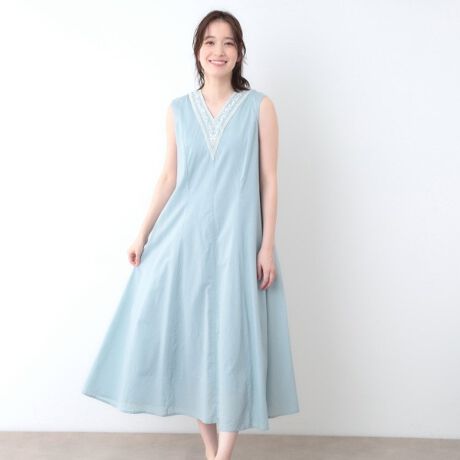 【コットン100%/インド綿/刺繍入り】Vネックワンピース
